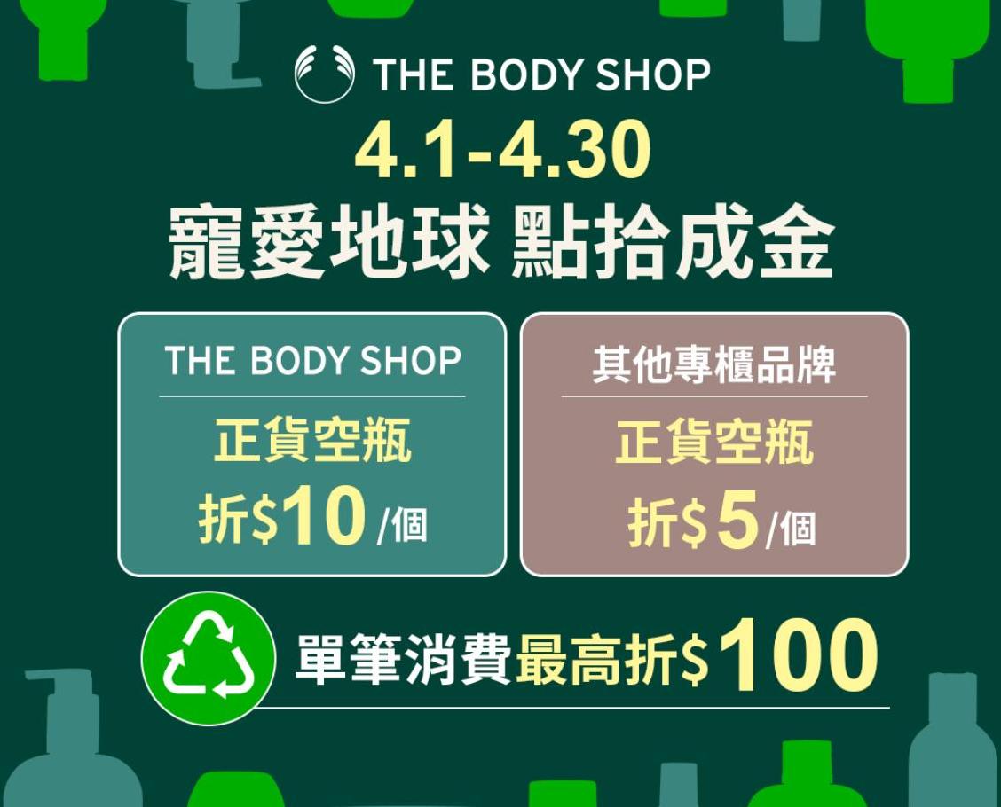配合50周年及地球日精神,舉辦空瓶回收兌換折扣活動:The Body Shop正貨空瓶每個折NT$10、其他專櫃品牌正貨空瓶每個折NT$5,單筆消費最高可折NT$100。自1988年起累計推行空瓶回收迄今已回收超過400萬支空瓶,以消費行動落實永續地球承諾。