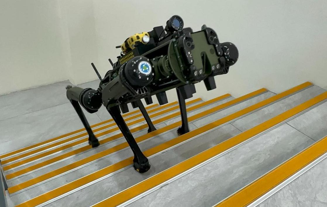 化學署也在2025年引進國內第一隻「四足機器犬」,除了有相同的偵檢能力外,其克服障礙地形的功能更佳,可深入倒塌建築物內執行任務。(圖片來源/化學署)