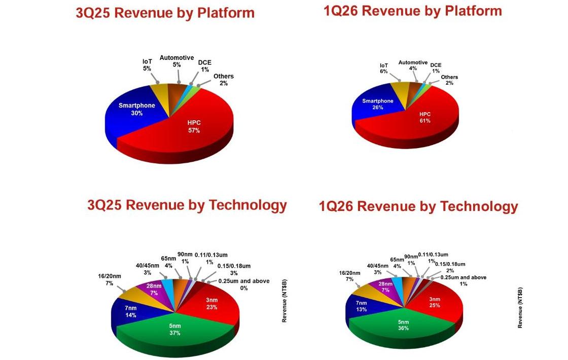 3奈米對台積電的獲利貢獻巨大,在去年第三季,3奈米占全部營收比重23%,當季營收9899億、3奈米貢獻2277億元。今年第一季3奈米占全部營收比重25%,當季營收1.134兆,其中3奈米貢獻了2835.25億元,比去年第三季大增558億。而5奈米和7奈米的比重都同時下降1%。