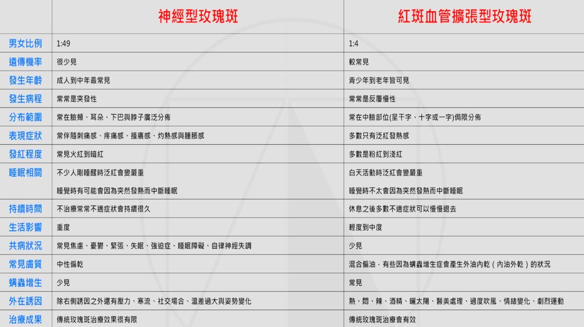 在眾多類型中,「神經性玫瑰斑」被視為目前最具挑戰性的亞型之一。