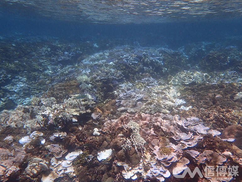 「海水溫度攝氏28度左右是最適合珊瑚生存的環境,溫度太高或是光太強都會造成珊瑚白化現象,而這附近海水的溫度是攝氏30度左右。」陳昭倫說。