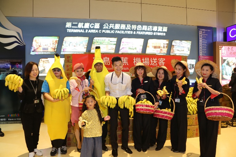 11月3日(五)下午二時首場分享活動在桃園國際機場第一、第二航廈共同舉辦,由昇恆昌總經理江建廷帶領機場免稅商店同仁親自發送20,000根賞味熟成的金黃香蕉,免費提供旅客享用,來自海外的國際旅客們也當場剝食新鮮漂亮的香蕉,香Q綿密口感讓旅客們讚不絕口,不負台灣「水果王國」美名。