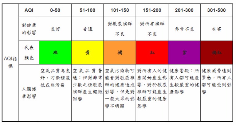 因此,環保署才在2016年將原本的空氣污染指標(PSI)、強化細懸浮微粒(PM2.5)併陳的雙指標方式,改以空氣品質指標(AQI)取代,並在12月1日上路;AQI整合PM2.5、新增臭氧8小時2項目,是我國目前最新空氣品質標準判斷依據,不僅關注PM2.5,也關注PM10與臭氧。