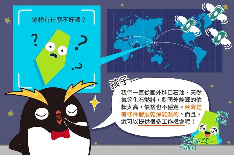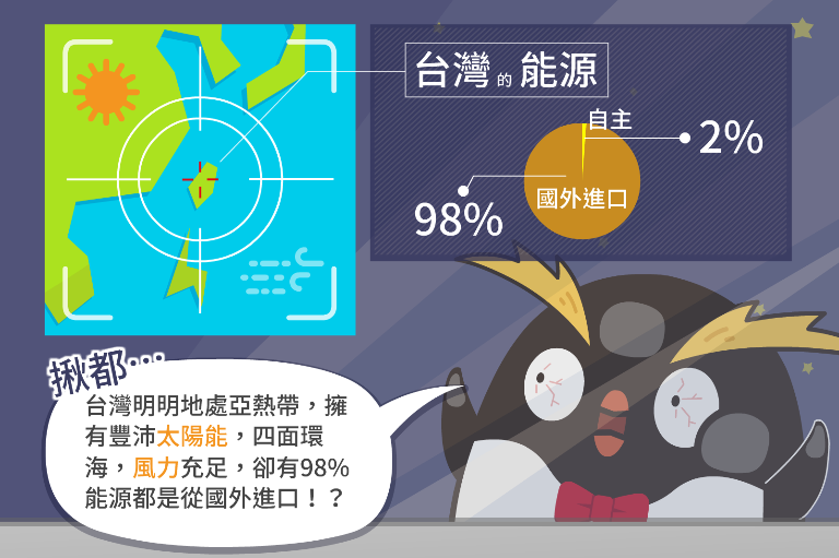 台灣目前約有98%能源從國外進口,但事實上,台灣其實有發展乾淨能源的本錢。(製圖/郭怡君,腳本/郭怡君)