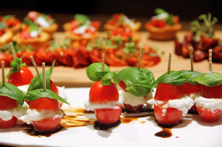 開胃菜:卡布里沙拉串:羅勒+莫佐瑞拉起士+蕃茄,佐巴薩米克醋,下方那個不是醬油嘿~(圖片來源/竹科煮婦煮食日誌)