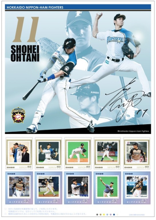 日本郵局以往曾經為運動員出過郵票,但從來沒有是棒球明星,直到2015年北海道分局才讓大谷翔平,成為第一位躍上郵票的日本棒球之子,北海道郵局幫大谷出的套票是52日圓五張,82日圓五張,整張套票要價2000日圓(見圖),是日本郵政史上第一位做郵票人物的棒球好手。
