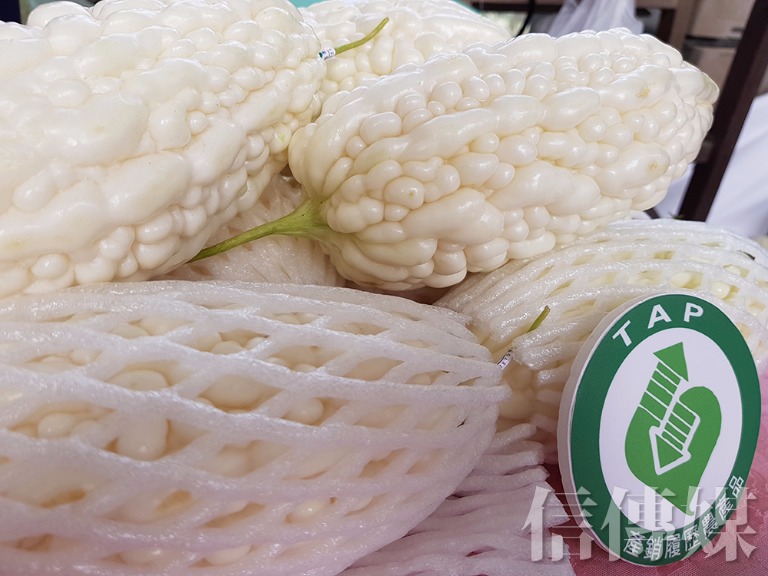 蘋果醋苦瓜,這是顛覆苦瓜的吃法。這苦瓜叫做白苦瓜,特色是苦度降低,跟藥署所合作,經過藥署所測試回甘度有2.3度。多汁脆口,只要簡單調味就能享用。(攝影/郭怡君)