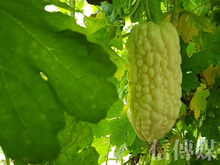 溫偉毅種的苦瓜為什麼跟別人不一樣?因為它的皮很厚,囊很大,很薄,所以比較不會苦。(攝影/郭怡君)