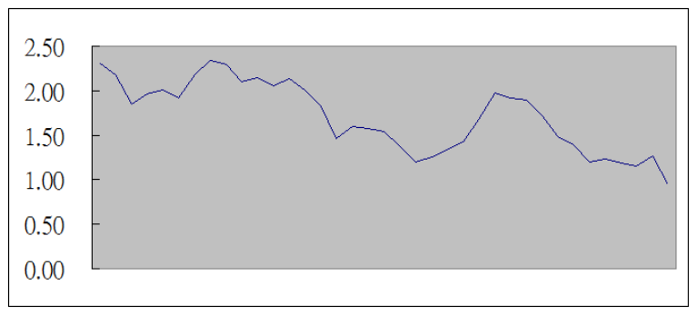 為了讓讀者方便認清這個事實,我把美國公債利差(10年期-3個月期)的圖畫出來如下,以下為2014年底至2017年11月底美國公債利差(10年期利率減3個月期利率):