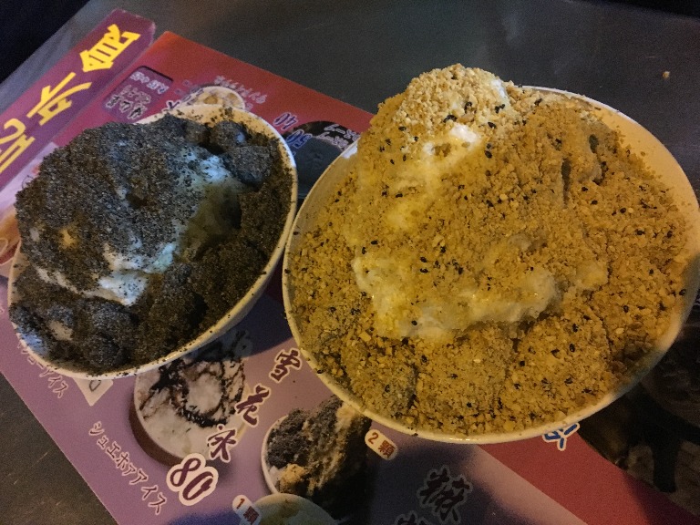 筆者覺得他們家的燒麻薯形狀很特別,呈現的是一片一片,扁扁的外型,口感的部分還是有Q,不過比較偏向年糕的口感,配上店家自己研磨的花生粉,真的很好吃,而不怕冷的民眾也可以點一碗另一個人氣產品八寶冰一起吃。