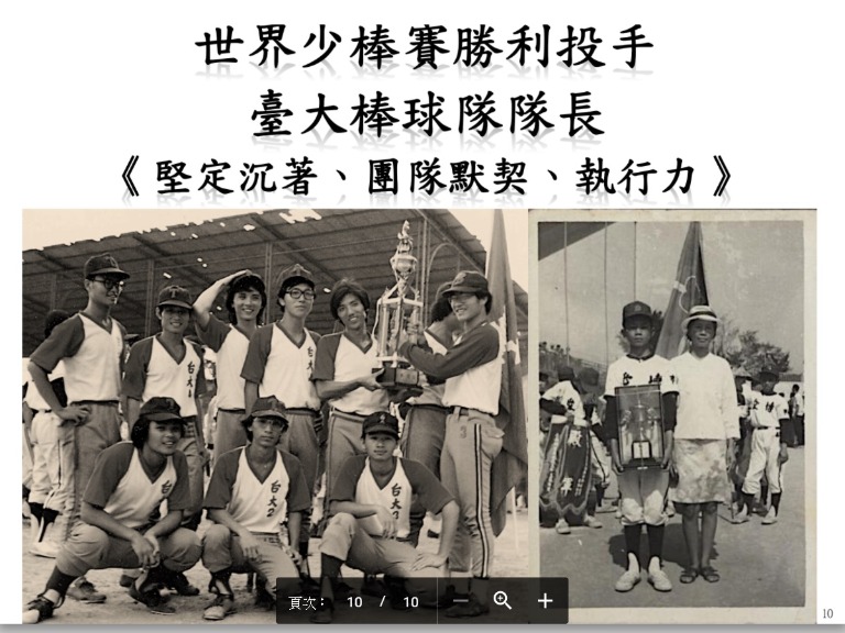 過了幾秒鐘,他自己又丟出一顆彩蛋,一些話好像已經埋在心裡很久似的:「其實還有一個重要因素啦,跟工作環境也有關係──棒球場。你看,台大棒球場從我念書到現在,都沒有變過,就是跟橄欖球隊合在一起使用,不是標準球場,啊……真的是……到現在都沒有改善。比起來,清大的棒球場非常好,我小時候打少棒,出國前在那邊集訓,它從那時候就是標準的球場了。」他的胸膛看起來依然寬厚,大概是因為過去三十年都維持著打壘球的習慣吧。