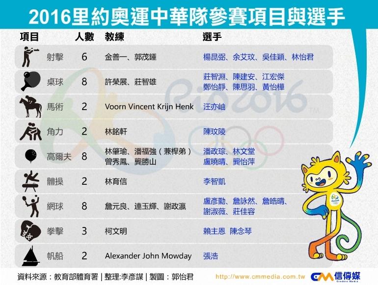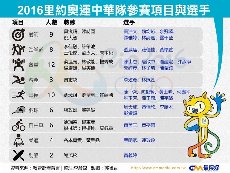 里約奧運前夕,美國體育媒體「運動畫刊」(Sports Illustrated)網站推出獎牌預測,各個項目列出金銀銅選手、國籍,中華隊被賦予「Taiwan」國名,搭配中華民國國旗,預測能獲得1金2銀2銅。