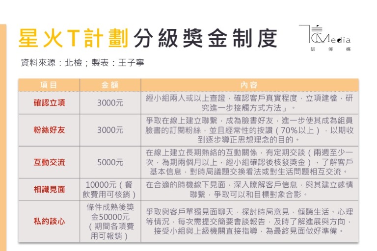 在「星火T計劃」中載明,藉由核心小組成員對我國軍方人員之結識與人脈拓展,訂定分級獎金制度物色我國軍方人員並深化交往。檢方認定,周泓旭涉嫌違反國安法且侵害國家法益重大,與前案有集合犯關係,為前案起訴效力所及,追加起訴並移請高等法院併案審理。