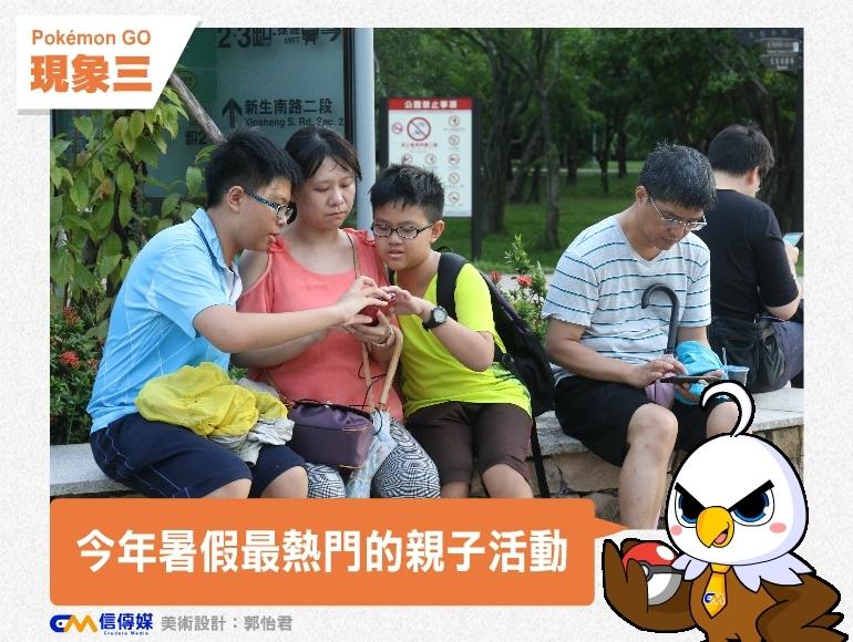 在很多社區公園、校園或是動物園都可以看見三代同堂家庭一起抓寶的畫面,小孫子教會阿公阿嬤,爺爺奶奶再教女婿媳婦等,而這些遊戲成了夏日晚間闔府出門散步的最大驅動力,相信無形中也凝聚和重建家庭關係。