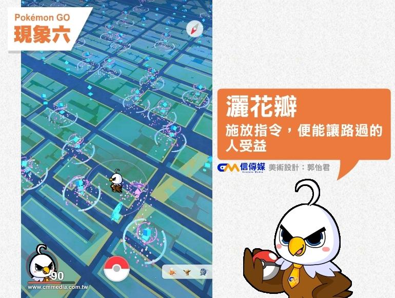 寶可夢GO遊戲中,只有要「灑花瓣」的景點,就能引誘精靈群集長達半小時。而「灑花瓣」這樣服務是只要自己或其他玩家購買這項道具,施放指令,便能讓路過的人受益。像是台北市內湖區碧湖公園就因此聚集超過百人潮,吸引亟欲大賺一筆的攤販,讓警察出面取締違規停車。腦筋動得快的商人也馬上想到用灑花瓣攬客,像是台北市忠孝復興商圈在每個交叉路段都湧出大片櫻花海。