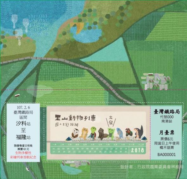 為慶祝「里山動物列車」2月6日南港站首航,台鐵局特別製作紀念套票,並於首航日限量發售600套,每套售價100元,售完為止。