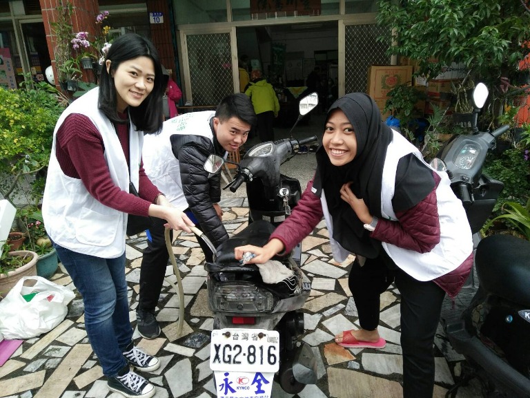 來自印尼的國際志工那裡拉在一個月的志工服務最後,參與地震救災,一起參與清洗工作。(圖片來源/黃榮墩)