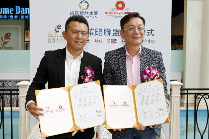 然而郭毓庭表示,他並非單打獨鬥,與台商天鈺盟威集團總裁蘇云明商談過後,雙方決定攜手打進越南市場,天鈺盟威集團將協助肯信集團在一年內展店20家以上,背後憑藉的是天鈺盟威集團擁有100萬的越南直銷商會員,此外,肯信集團也將發掘集團內的新移民主廚,共同開發越南市場。