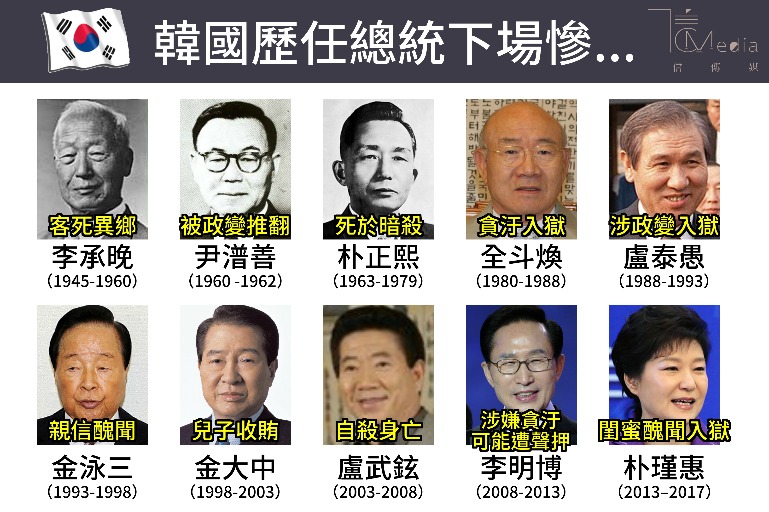 曾經有人開玩笑說,世界上最危險的職業就是南韓總統,因為歷任南韓總統幾乎很少能夠安然無事的頤養天年,最後不是被暗殺、下獄,或著就是落得自殺的下場,如今繼前任總統朴槿惠之後,再前一任的總統李明博也遭到南韓檢方以涉嫌貪污進行調查,成為另一個南韓總統無法善終的最新例證。