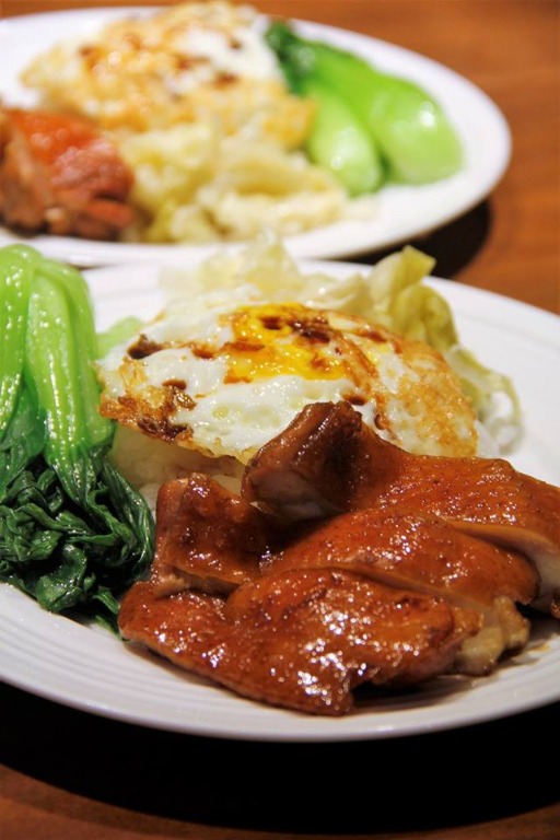 4.所有菜組裝成一盤(煮油雞的醬油可淋在飯或蛋上),上菜