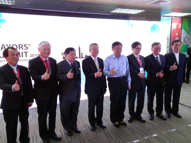 共同主辦的台北市,開幕時市長柯文哲並未出席與蔡總統同台,不過下午包括由宏碁創辦人施振榮、遠東集團董事長徐旭東、華碩副董曾鏘聲、研華執行董事何春盛及中華電董事長鄭優與童子賢連袂站台的「智慧城市展及城市首長高峰會」時,柯文哲終於現身。
