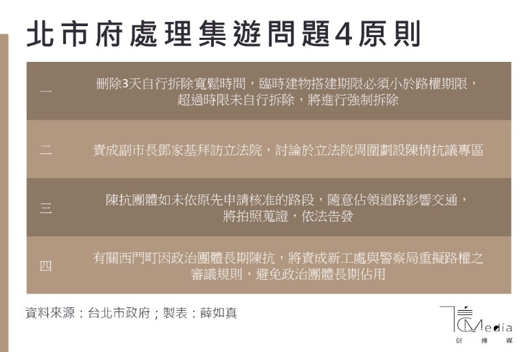 對於多個民運團體的怒吼,柯文哲難道沒聽到嗎?事實上,柯文哲在27日的中山區行動市政會議上強硬表示,過去因法律漏洞、市府行政怠惰,導致馬路和人行道等公共空間長期遭特定人士佔用,他誓言從現在開始,終止這類「政治路霸」的亂象。