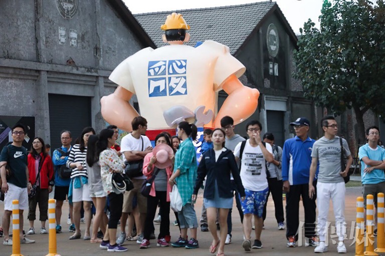 聳立在倉庫群入口的工人意象塑像,每到假日總會湧進滿滿的觀光人潮,熱鬧非凡。