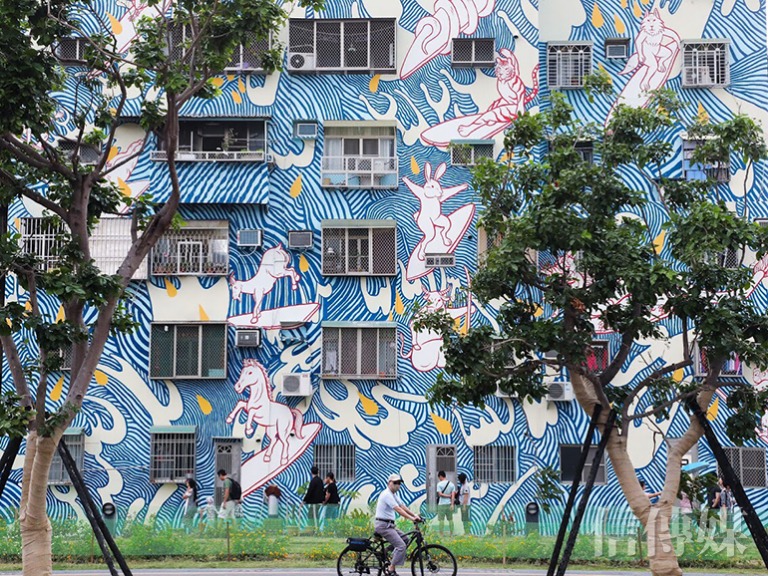 放眼望去,社區內的外牆彩繪看起來充滿藝術氣息,不少民眾經過都會駐足拍照。