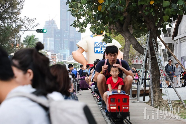 園區內特有的哈瑪星駁二線迷你小火車,可供民眾搭乘環繞倉庫群。
