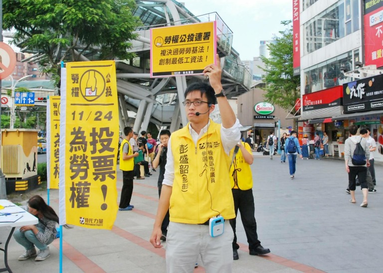 從最一開始待的智庫,就關注勞權、婚姻平權、居住正義、長照、托育等議題,擔任時力智庫副執行長,到了時力黨慶,彭盛韶的名字正式出現在擬參選人名單上。「年輕人是真的討厭政治、對政治無感嗎?我覺得是年輕人的話語權不足。」眾所周知,時力長期關注青年議題,在年輕人之間有一定的聲量。根據台灣世代智庫的的民調,針對2018縣市議員選舉,在未向受訪者提示可能的政黨選項下,除兩大黨外,時力和綠黨分別獲得民眾主動指名,時力位居第三名。
