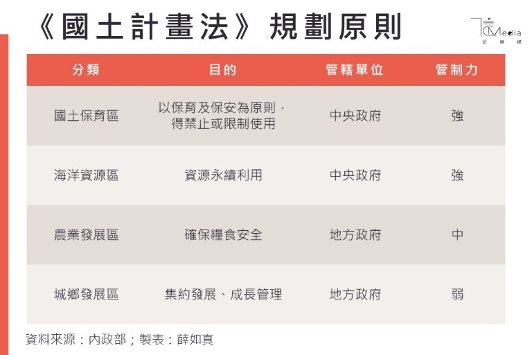 「長期下來,台灣的國土計畫十分凌亂、且遷就現實。工商發展逐漸導致農地遭到侵蝕、山林不當開發,整個社會在討論產業發展與公共投資的過程中,也常有不確定性,往往造成內耗。」內政部長葉俊榮說道。但,國土計畫施行後,這些問題就解決了嗎?