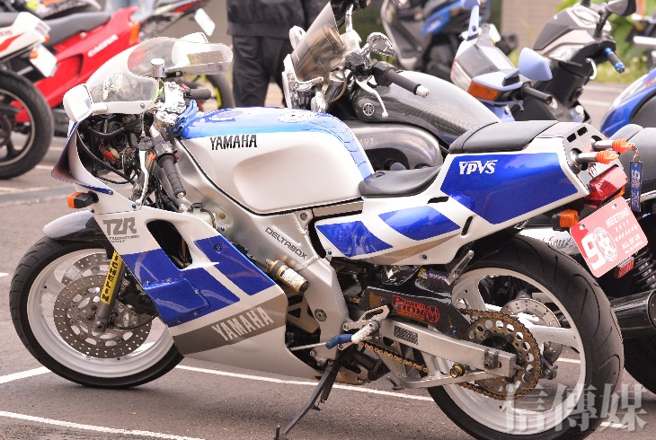 「我最早看到這台是在電影《烈火戰車》裡面,大家都在看劉德華的NSR,但我看嘉樂的這台TZR,等我有能力了,二話不說就收藏了一台。」一講到自己的愛車就非常興奮的小丁,把愛車帶來經典的90年代2輪的靜態車聚,和同世代的經典機車NSR、RZR、秋刀魚等同場互相輝映。