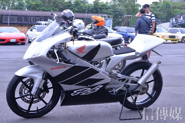 Honda RS 125是工廠賽車,帶著天生競速的血統,由於加速太快,沒辦法在一般道路上行駛,一台要價60、70萬台幣,小葉說「車子設計的機構、車架的穩定度非常的好,若一般機車賽車要150公斤的話,RS 125大約70公斤,姿勢正確一點只要一隻手可以舉起來整台車子!」